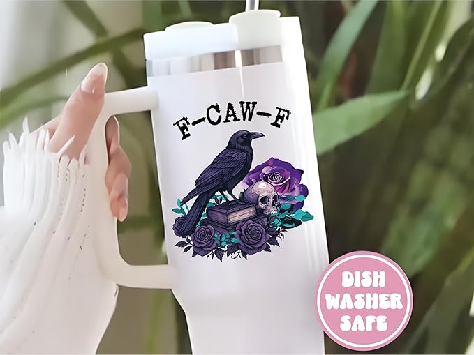 F-Caw-F Raven Goth Tumbler – 40oz gothic crow tumbler with handle and straw, perfect for gothcore, dark romance, and Halloween lovers.